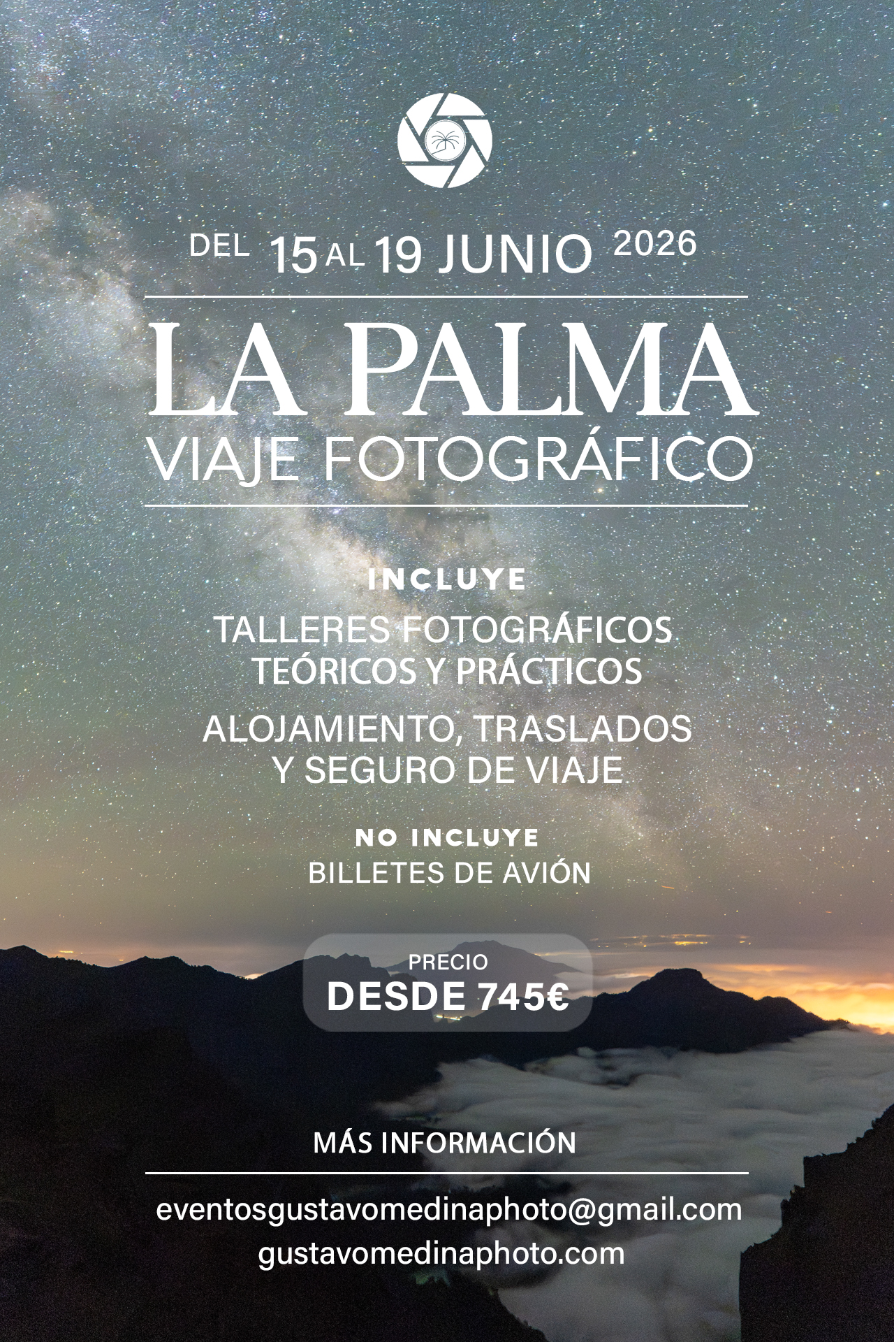 Más información en eventosgustavomedinaphoto@gmail.com